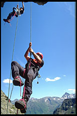 abseilen, zu zweit gleichzeitig und im Überhang. Wie man auf den Bildern sehen