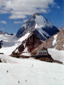 Genau 10 Jahre nach unserem ersten Besuch der Ortlergruppe stehen wir wieder in Sulden und haben bei schönem Wetter einen phantastischen Blick auf das Dreigestirn. Gemeinsam geht es auf die Düsseldorfer Hütte als Ausgangspunkt für die Besteigung des Hohen Angelus (3521m). Neben alten Haudegen, wie Klaus Röben, Joop und Else, Andreas, Hans-Jörg, Uta, Gunter und Sönke sind auch Neulinge in der Gruppe (Michael Reidt und Andreas Brendel). |