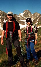 Vom Basislager Niederelbehütte ging es jeden Tag in den Fels. Zunächst wurde Klettertechnik im Fels mit Sicherungs- und Rettungsmaßnahmen im Klettergarten geübt. Bereits der zweite Tag führte auf die 2986m hohe Fatlarspitze mit Klettern in I und II Schwierigkeitsgrad. Immer mit einem drohenden Gewitter im Nacken bezwang die kleine Gruppe am folgenden Tag die Rouklaspitze. Bei der stark ausgesetzten Gratkletterei konnten sich die Bergneuling an grandiosen Tiefblicken ergötzen. |