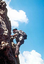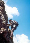 1. Tag: Der gutgriffige Fels auf dem roten Turm machte das Klettern schnell zum Vergnügen. Die Klettergruppe wurde ziemlich schnell vom Kletter-Virus befallen und möchte natürlich so schnell wie möglich höher hinaus. |