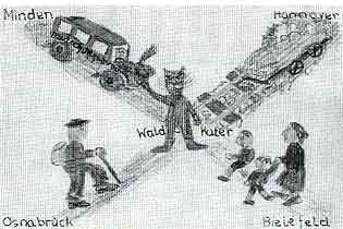 Kinderzeichnung von der 1. Sternwanderung 1954 |