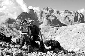 Die „Dolomitensaga“, gerade fertig gestellt, ist eine Multivisionsschau, in der Andreas Kögel und seine Frau begeistert eine ungeahnte Fülle von Eindrücken aus der Erlebniswelt der Dolomiten verarbeitet haben. Die Dolomiten sind heute fast ausschließlich Anziehung und Faszination gleichermaßen für den beschaulichen Wanderer, den Kletterer im extremen Dolomitenfels und den Fan der modernen Skiarena. Wer hat nicht schon vieles von den Wundern dieser begnadeten Natur selbst erlebt oder zumindest davon gehört? Aber die Dolomiten sind nicht nur die Südtiroler Seite mit dem Rosengarten, den Drei Zinnen und dem Pragser Wildsee. Die Dolomiten sind auch das Val Cadore, die Pale di San Martino, Fornesighe, und, und, und.... Landschaften, dem Garten Eden gleich, oder unwirtlich und menschenfeindlich. |