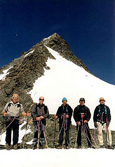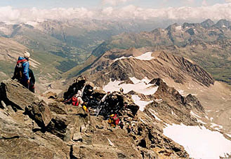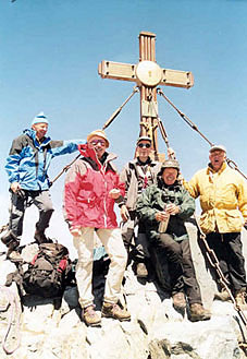 Wenig später ist der Gipfel des Großglockner erreicht, des mit 3798 m höchsten Berges Österreichs. Die herrlich weite Fernsicht hat den Aufstieg gelohnt. |