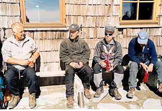 Um etwa 11.00 h erreichen wir bei herrlichem Wetter die Erzherzog-Johann-Hütte (3454 m) auf Adlersruh. Wir legen weiteres Gepäck ab und machen eine knapp 2-stündige Pause. Unsere Absicht ist, möglichst viele vor uns aufgebrochene Bergsteiger absteigen zu lassen, um für uns freie Bahn zu haben. |