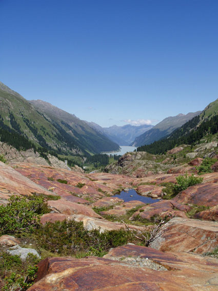 Talabwärts der gewaltige Gepatschstausee, gegenüber eine Kulisse stolzer Dreitausender und der mächtige Eisstrom des Gepatschgletschers bildeten eine eindrucksvolle Umgebung. Da uns auch das Wetter in der gesamten Woche mit Sonnenschein und angenehmen Temperaturen verwöhnte, konnten die Bedingungen kaum besser sein. | ||||